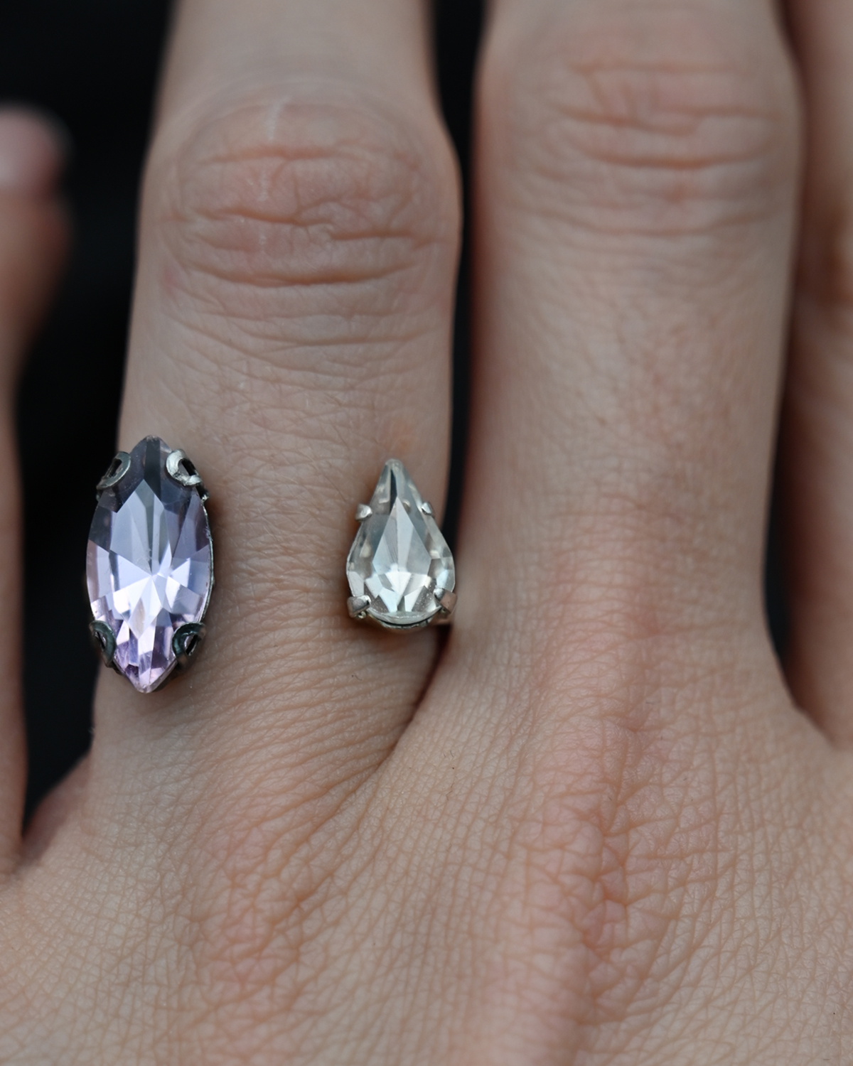 Ръчно изработен пръстен от висококачествени кристали, поставени в основа от месинг и ниска проба сребро.