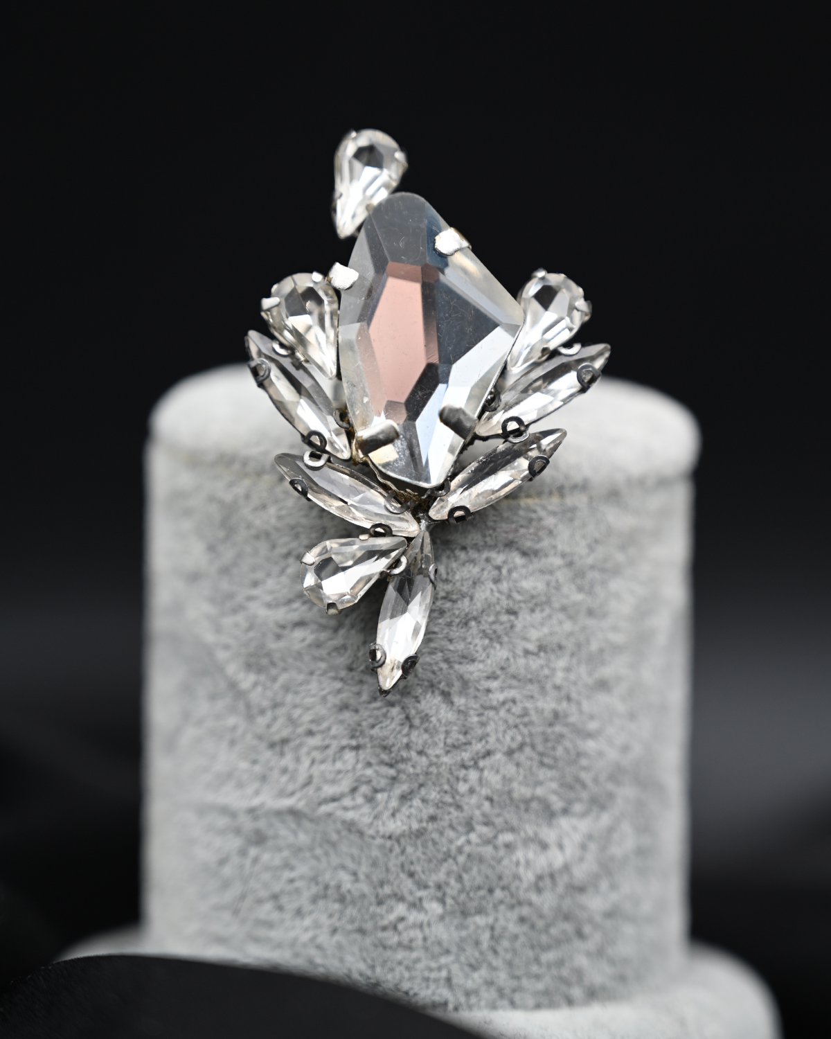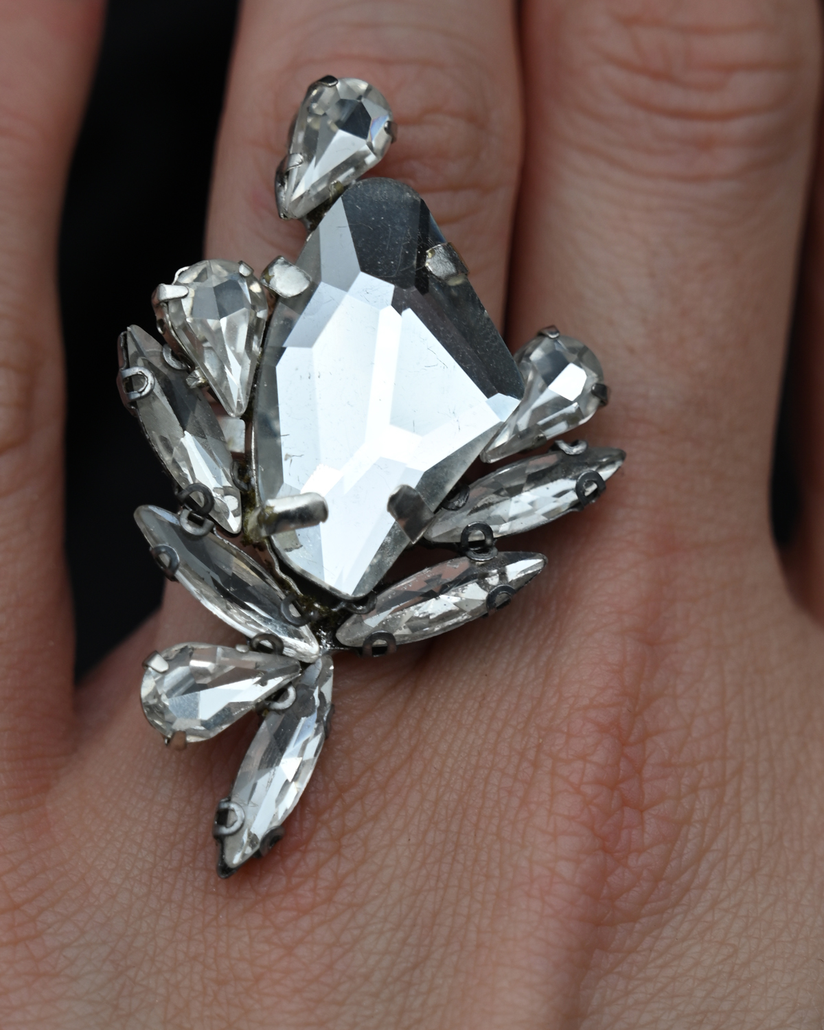 Ръчно изработен пръстен от висококачествени кристали, поставени в основа от месинг и ниска проба сребро.