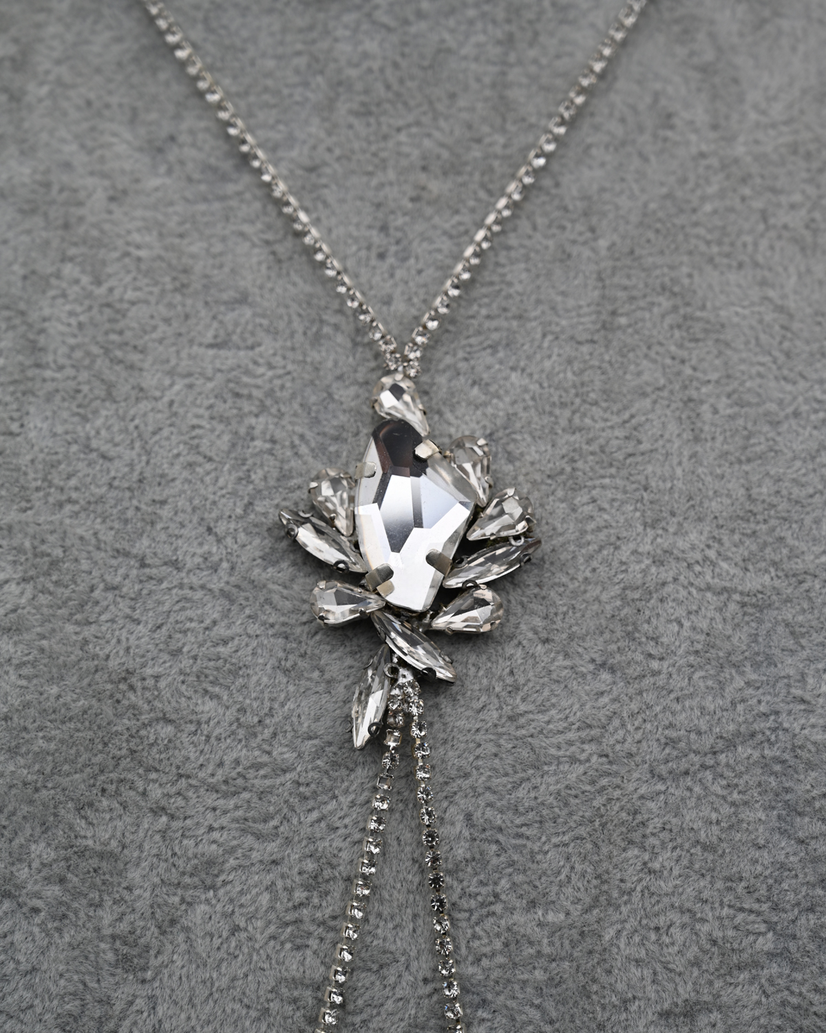 Ръчно изработено колие от висококачествени стъклени кристали, поставени в основа от месинг и ниска проба сребро.